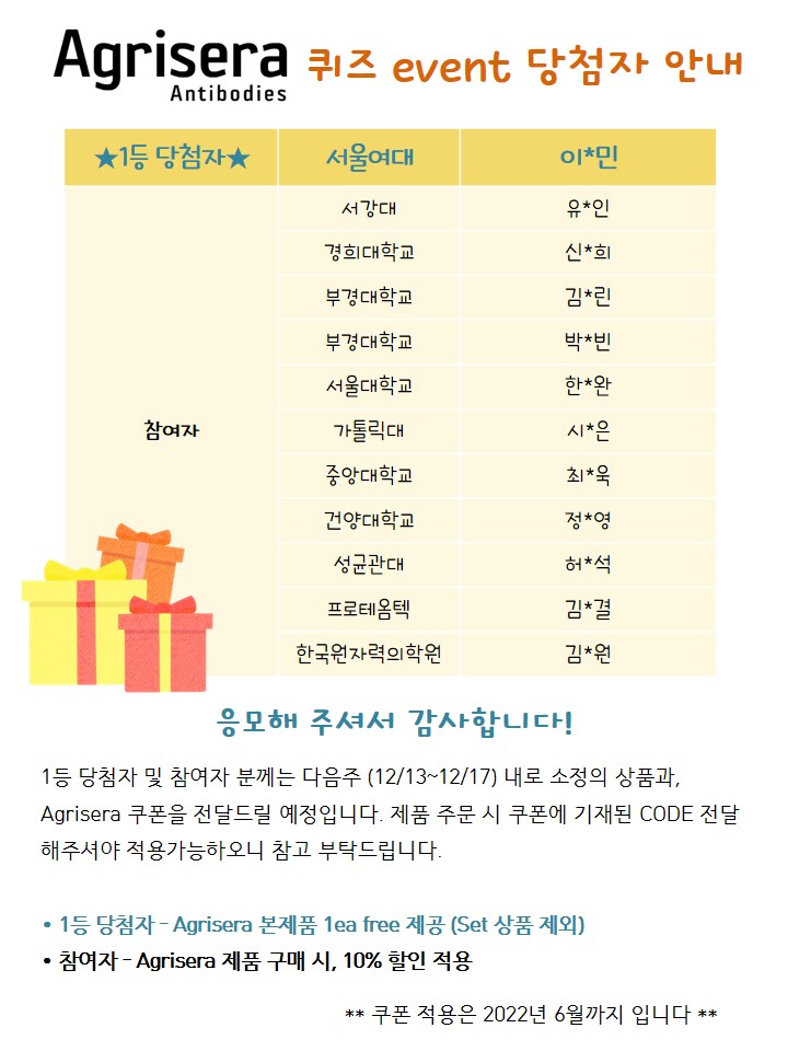 [Agrisera] Quiz 이벤트 당첨자 발표!