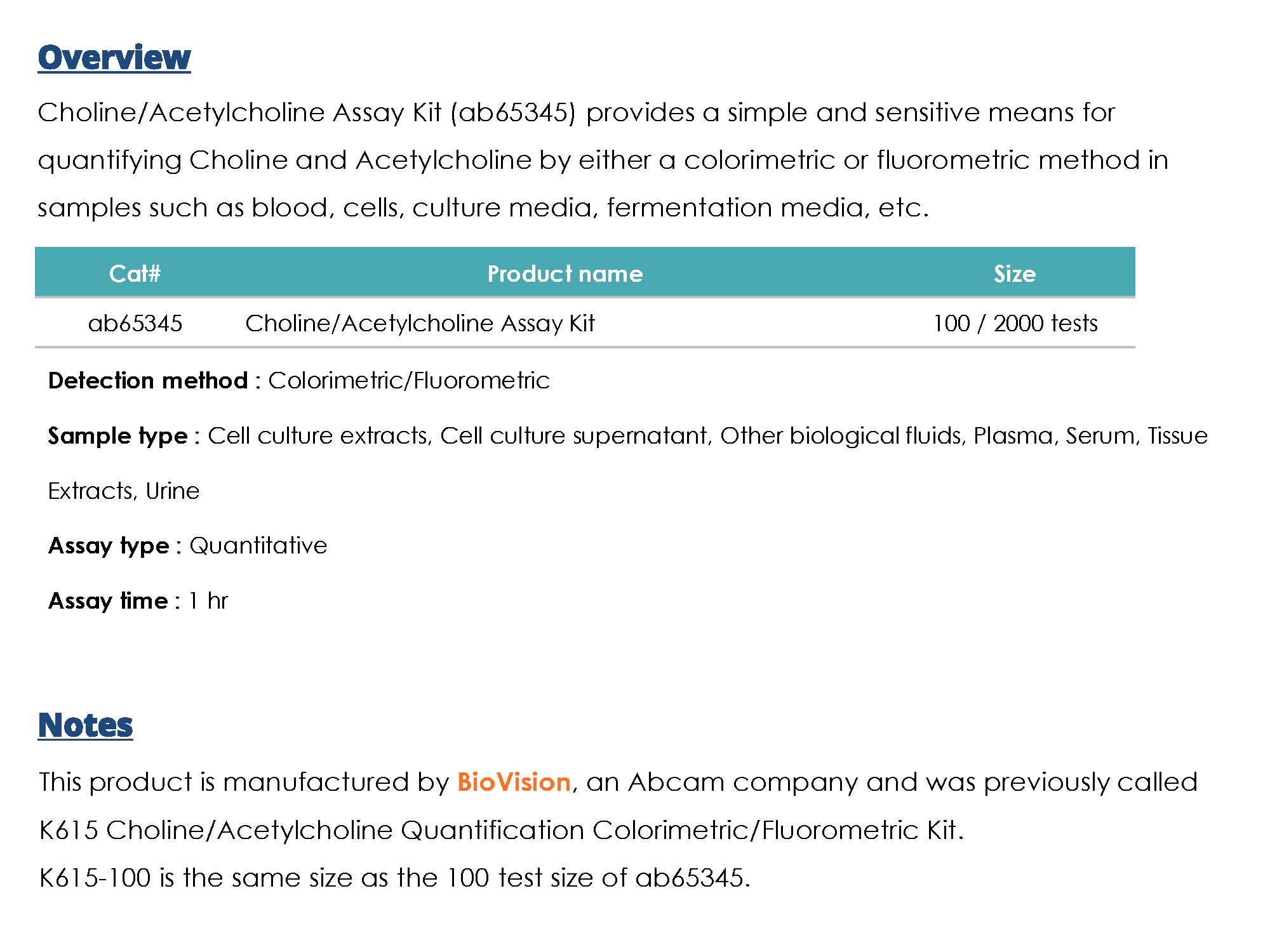 [Abcam] Choline/Acetylcholine Assay Kit