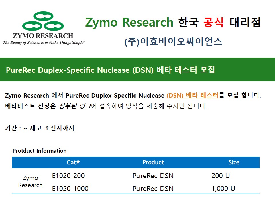 [Zymo Research] Duplex-Specific Nuclease (DSN) 베타 테스터 모집합니다!