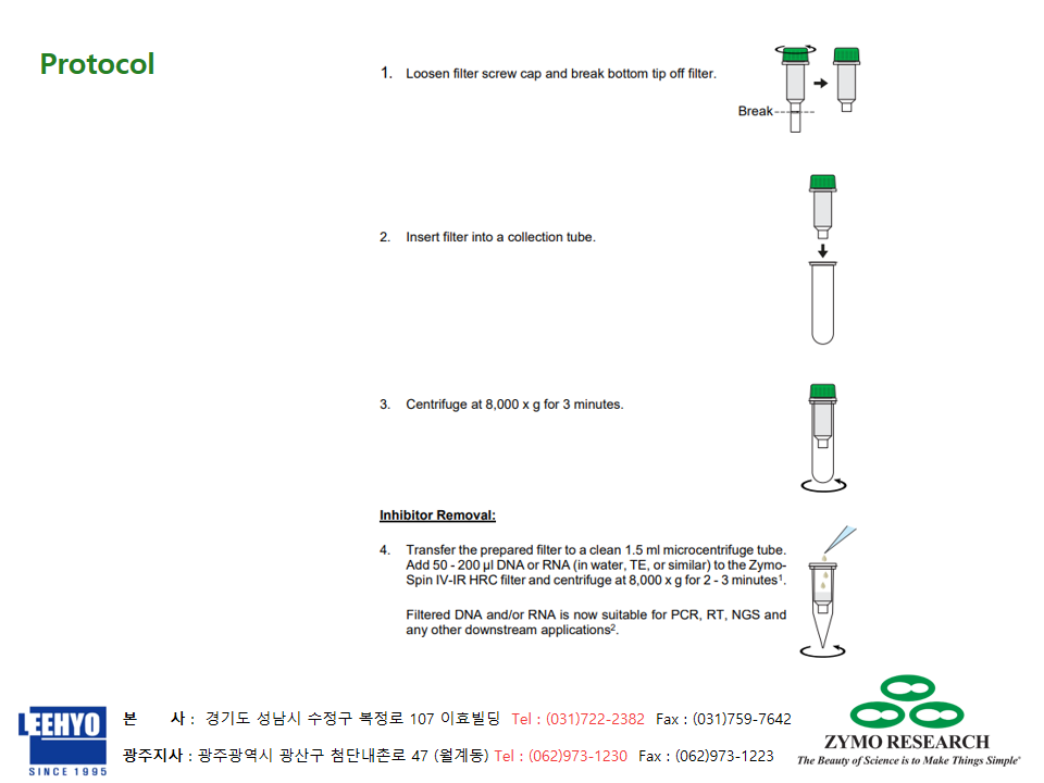 [Zymo Research] OneStep™ PCR Inhibitor Removal Kit