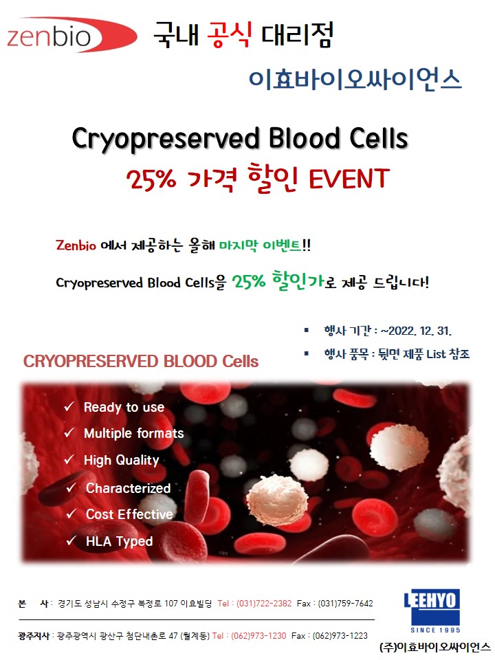 [Zenbio] Cryopreserved Blood Cells 25% 가격 할인 이벤트