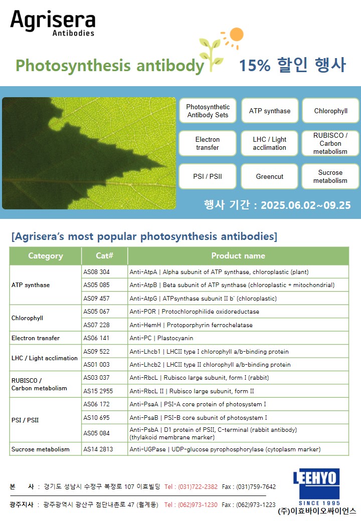 [Agrisera] Photosynthesis antibody 15% 할인 행사